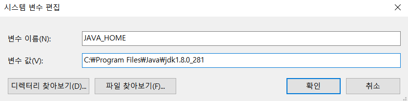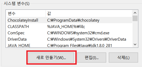 변수 이름 : JAVA_HOME , 변수 값에 jdk 경로를 넣는다.
