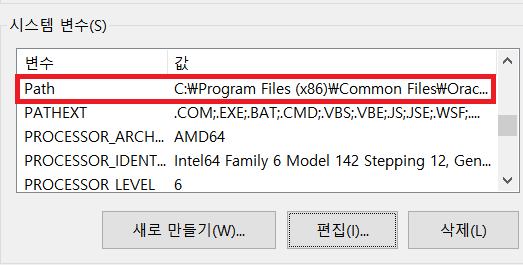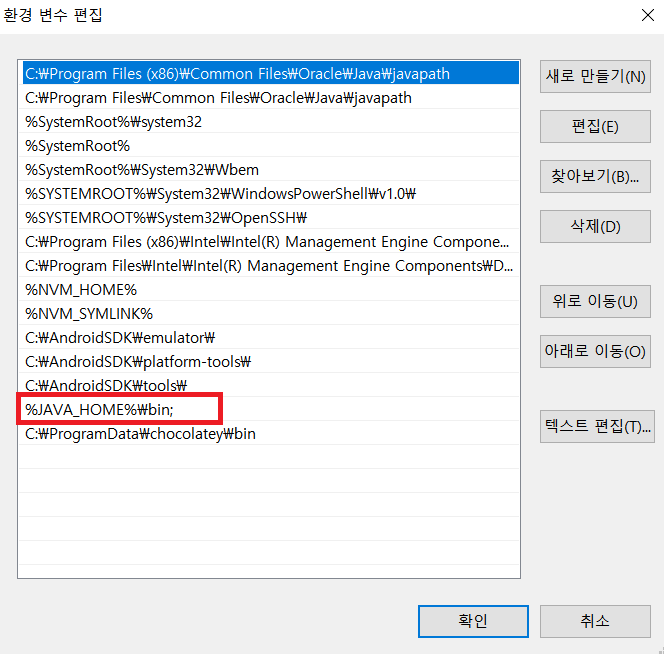 %JAVA_HOME%\bin; 을 추가하고 확인