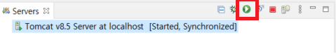 초록색 재생버튼을 클릭하면 콘솔에 WAS 서버 구동되는것이 출력된다.