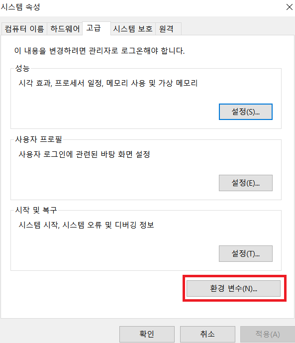 필자가 JDK를 이미 설치했기에 바로 환경변수 설정으로 넘어가겠다.
