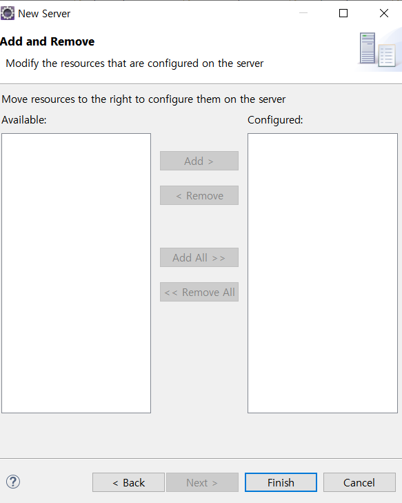 Server 탭이 나오면 No servers are available. Click this link to create a new server.. 클릭한다.
