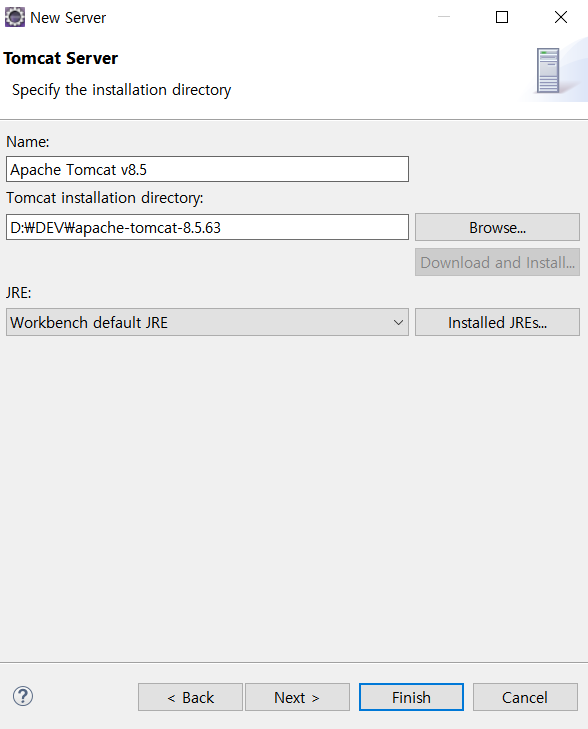 톰캣 WAS가 있는 디렉터리를 지정한다.