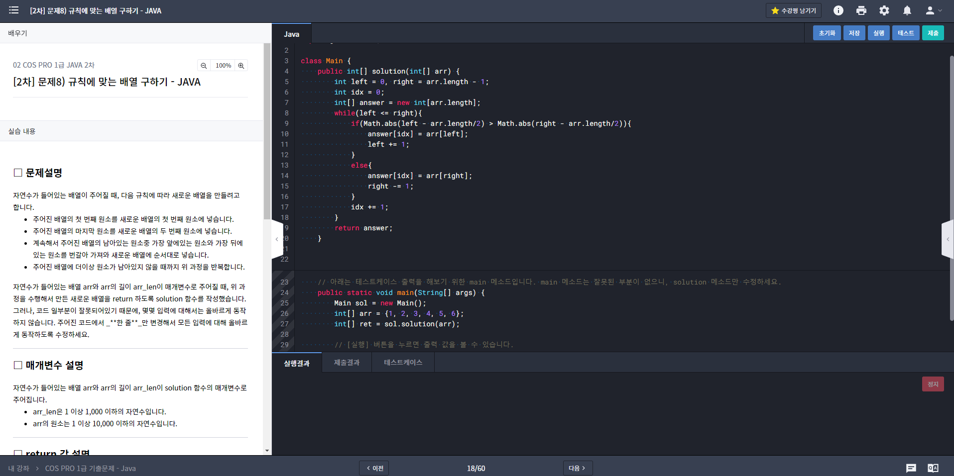 이번 포스팅은 Cos Pro 1급 java 2차 기출 8번 문제인 규칙에 맞는 배열 구하기 입니다.