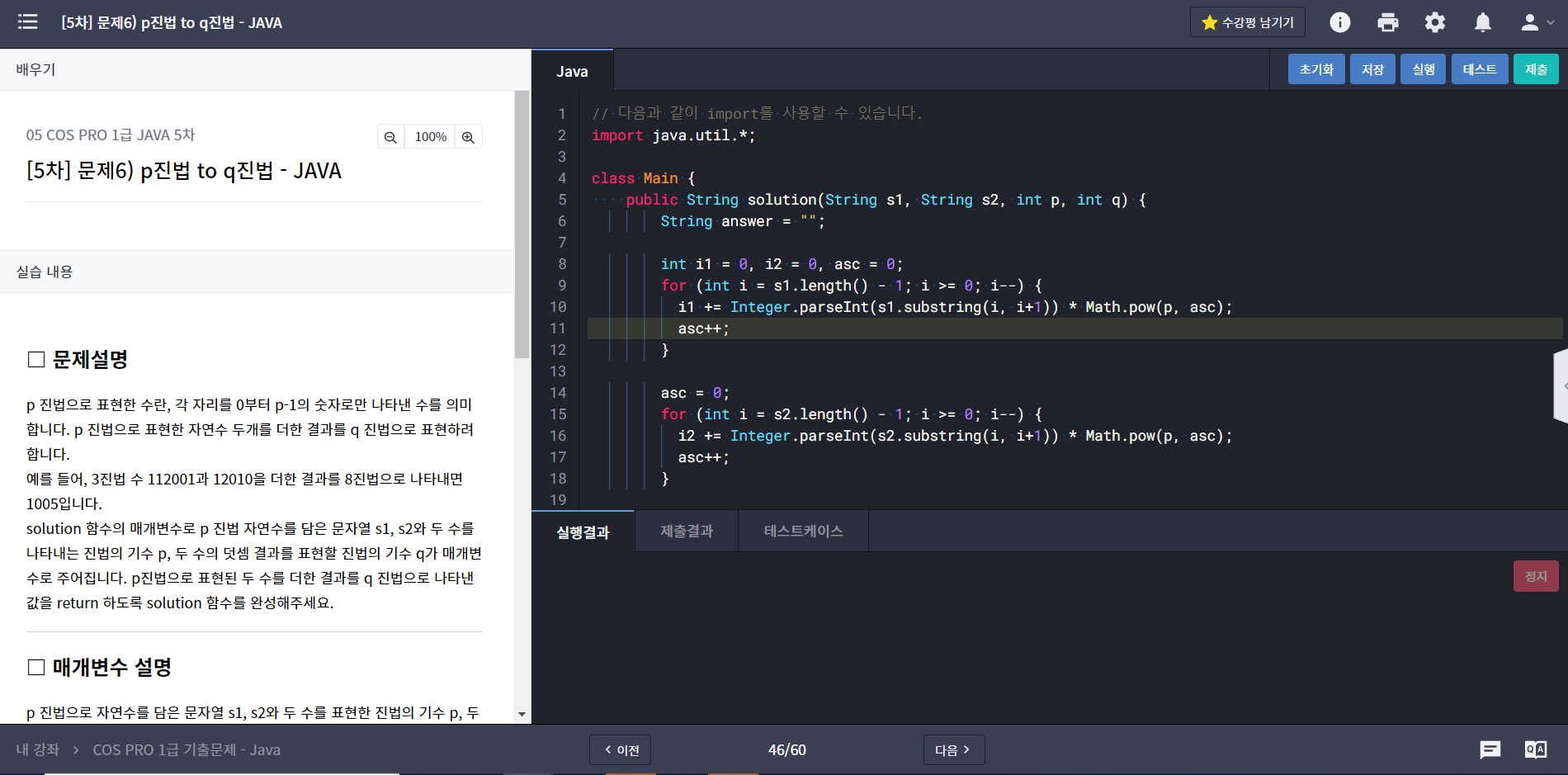 이번 포스팅은 Cos Pro 1급 java 5차 기출 문제 중 6번 문제인 p진법 to q진법을 풀어보겠습니다.