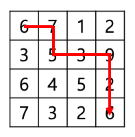 int[][] board = {{6, 7, 1, 2}, {3, 5, 3, 9}, {6, 4, 5, 2}, {7, 3, 2, 6}};
