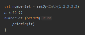 val numberSet = setOf<Int>(1,2,3,3,3)