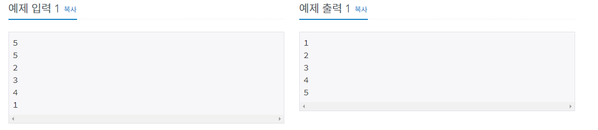 N개의 수가 주어졌을 때, 이를 오름차순으로 정렬하는 프로그램을 작성하시오.