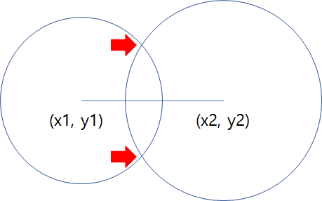 두 원의 교점을 구하는 것이 핵심이다.