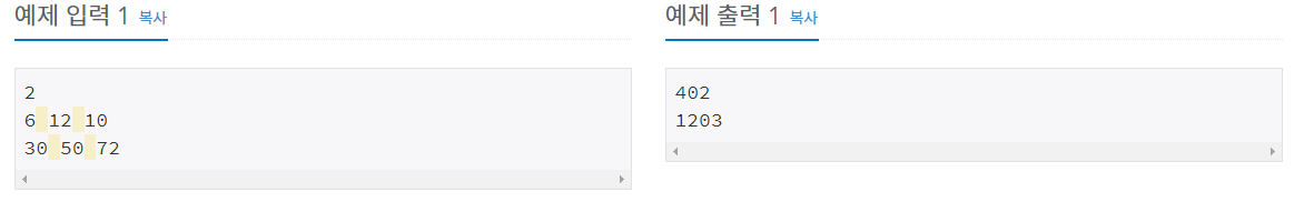 프로그램은 표준 입력에서 입력 데이터를 받는다. 프로그램의 입력은 T 개의 테스트 데이터로 이루어져 있는데 T 는 입력의 맨 첫 줄에 주어진다. 각 테스트 데이터는 한 행으로서 H, W, N, 세 정수를 포함하고 있으며 각각 호텔의 층 수, 각 층의 방 수, 몇 번째 손님인지를 나타낸다(1 ≤ H, W ≤ 99, 1 ≤ N ≤ H × W).