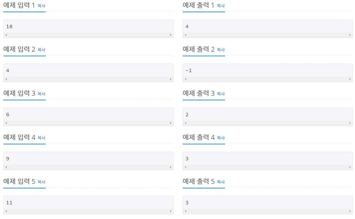 상근이가 배달하는 봉지의 최소 개수를 출력한다. 만약, 정확하게 N킬로그램을 만들 수 없다면 -1을 출력한다.