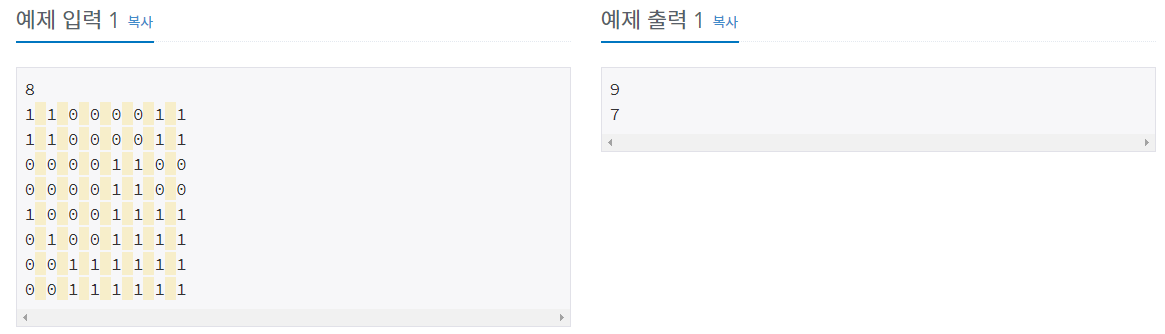 입력으로 주어진 종이의 한 변의 길이 N과 각 정사각형칸의 색(하얀색 또는 파란색)이 주어질 때 잘라진 하얀색 색종이와 파란색 색종이의 개수를 구하는 프로그램을 작성하시오.