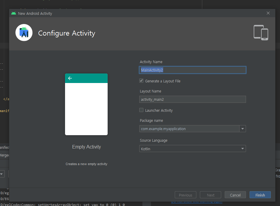 (1) Empty Activity 생성