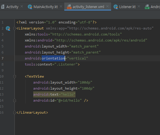 생성된 activity_listener.xml 태그명 변경