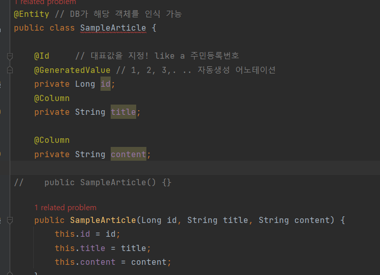 이번에는 SampleArticle이라는 클래스를 선언해 줄 것이다.