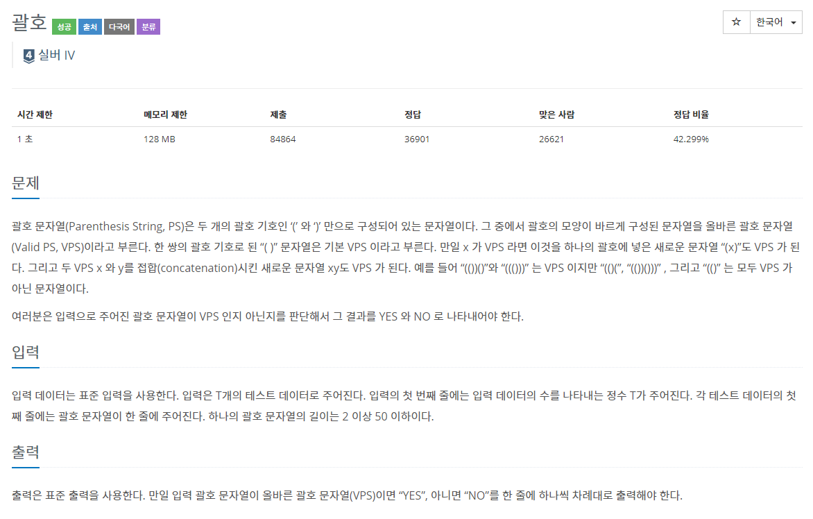 여러분은 입력으로 주어진 괄호 문자열이 VPS 인지 아닌지를 판단해서 그 결과를 YES 와 NO 로 나타내어야 한다.