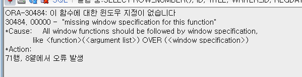 아무래도 기준이 되는 OVER(ORDER BY 컬럼) 을 써줘야 하는 것 같다.