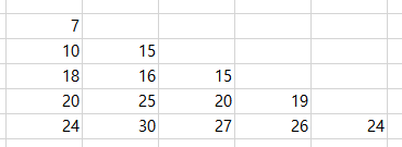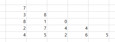 첫째 줄에 삼각형의 크기 n(1 ≤ n ≤ 500)이 주어지고, 둘째 줄부터 n+1번째 줄까지 정수 삼각형이 주어진다.