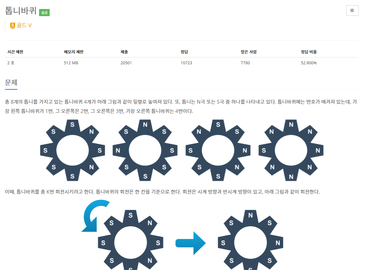 ---> 1. 지정받은 번호의 톱니바퀴를 방향에 맞게 일단 회전시킨다.