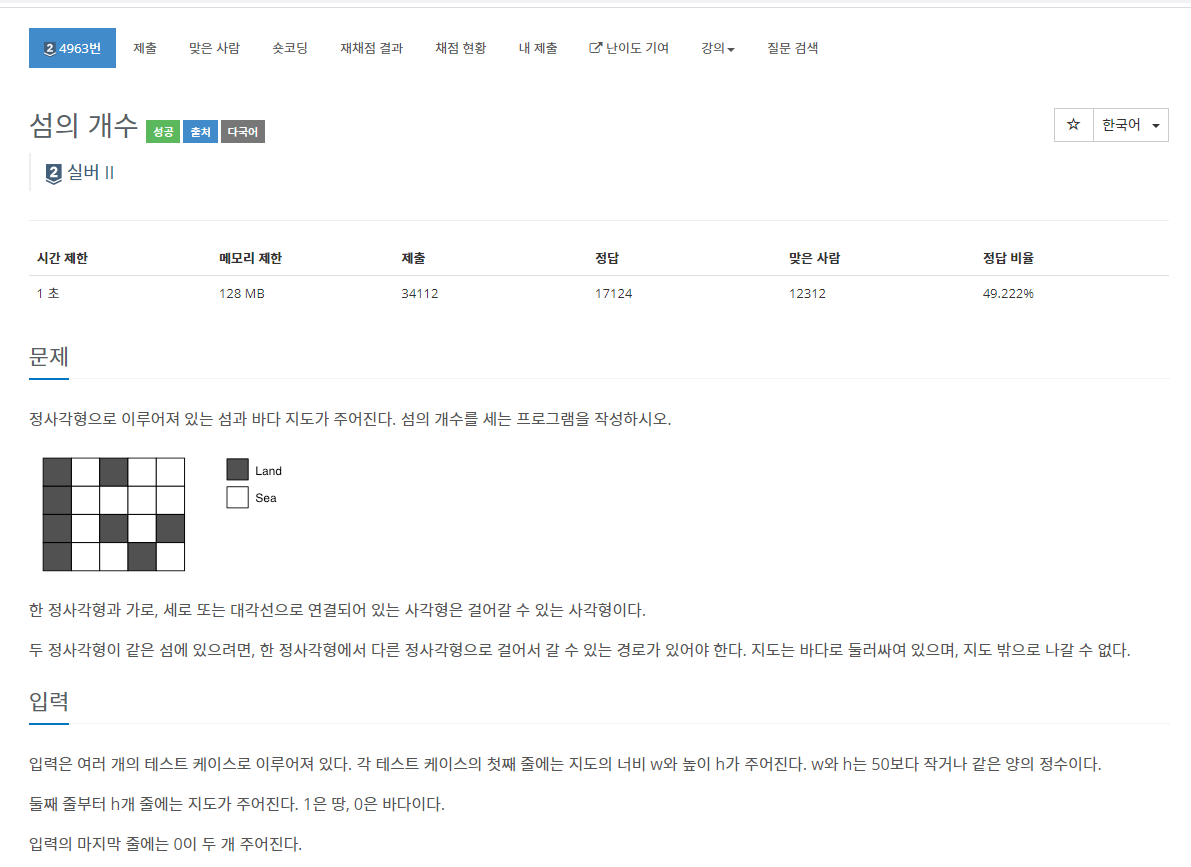 4963번: 섬의 개수