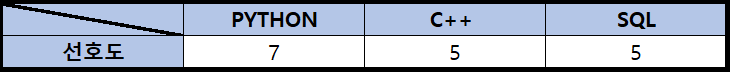 예를 들면, SQL의 SI 직업군 언어 점수는 3점이지만 CONTENTS 직업군 언어 점수는 2점입니다. SQL의 HARDWARE, PORTAL, GAME 직업군 언어 점수는 0점입니다.