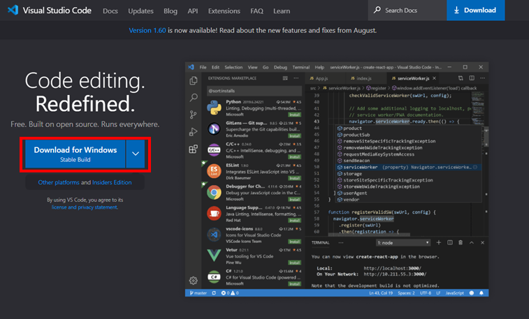 에디터는 VS Code를 사용할 것이다.(https://code.visualstudio.com/)