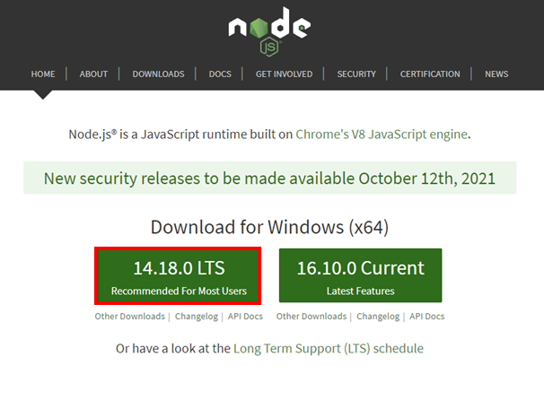 1. Nodejs.org로 가서 LTS를 다운로드 한다. (https://nodejs.org/en/)