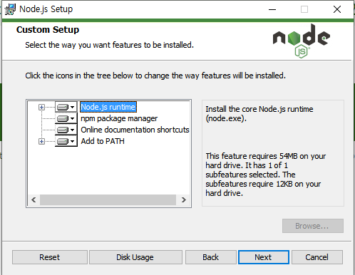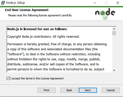 3. 명령 프롬프트를 띄워서 Node.js가 설치되었는지 확인한다.