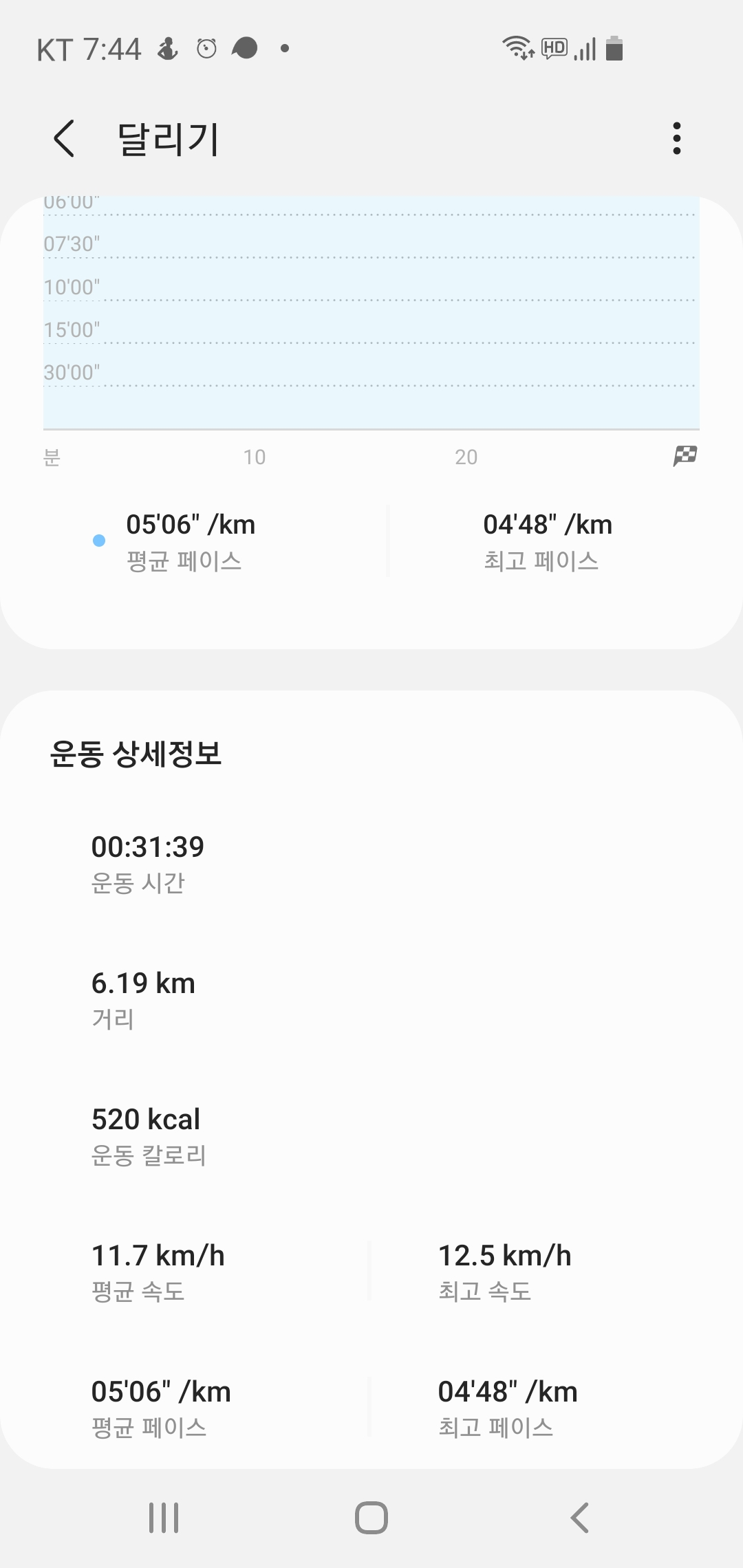 어제 거리 기준으로 6.97 km 뛰었으니,