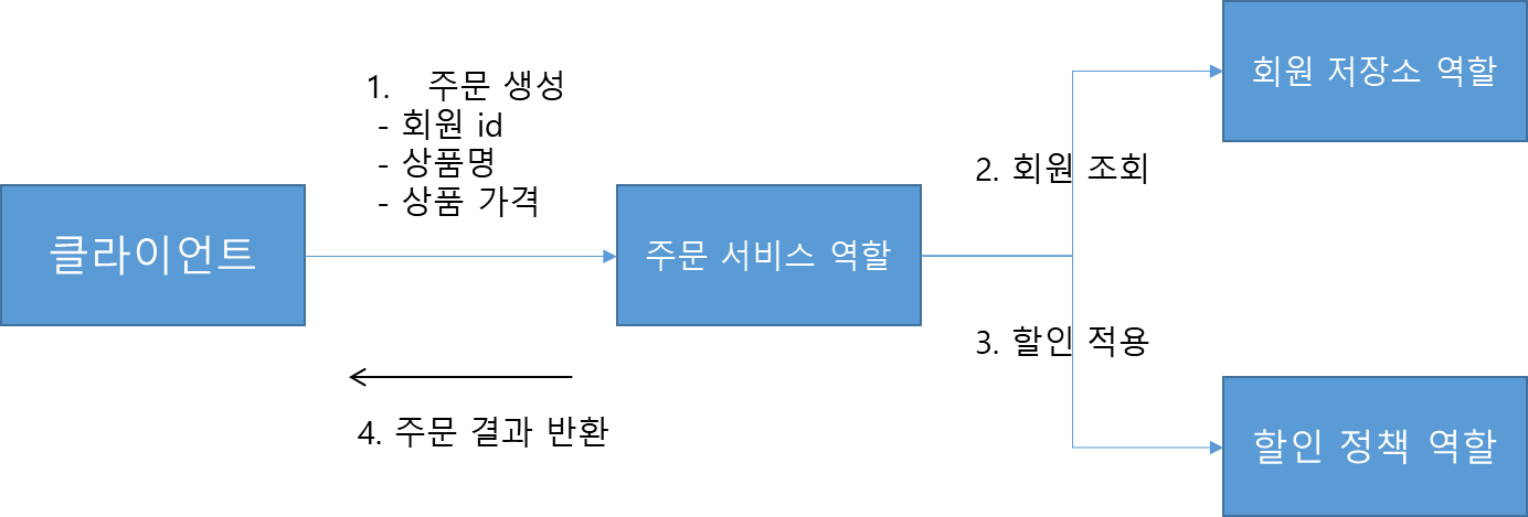 - 주문 결과 반환 : 주문 서비스는 할인 결과를 포함한 주문 결과를 반환한다.