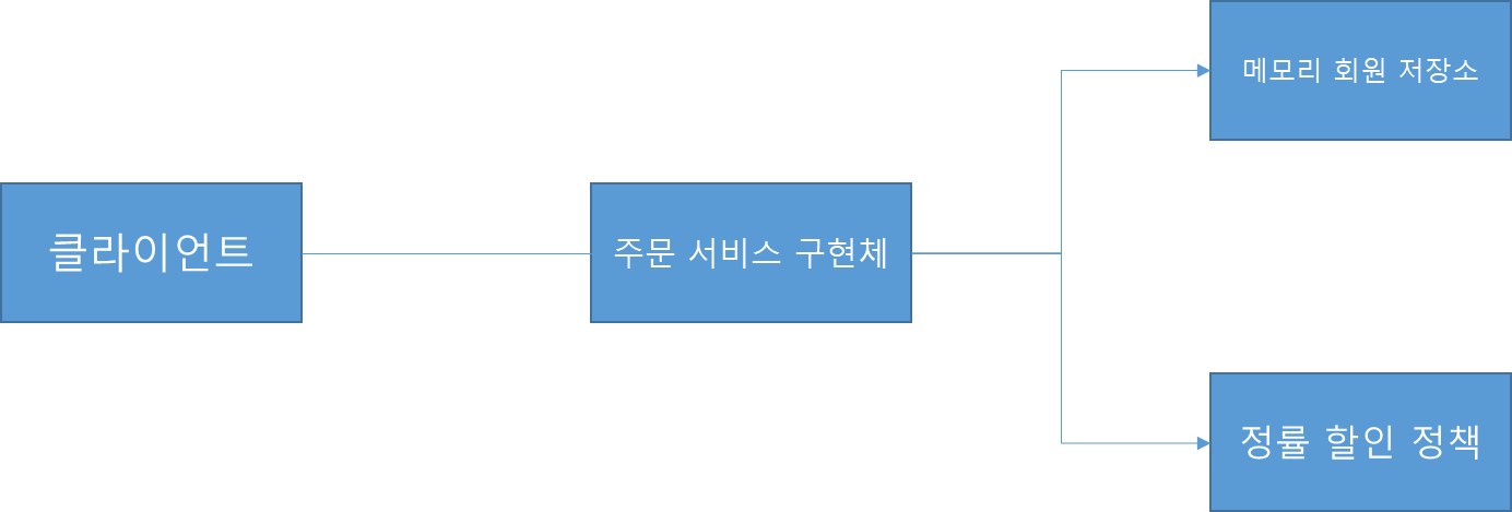 회원을 메모리에서 조회하고, 정액 할인 정책(고정 금액)을 지원해도 주문 서비스를 변경하지 않아도 된다.