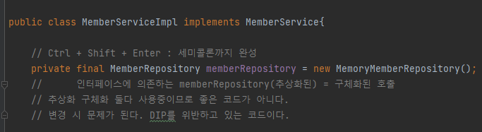 private final MemberRepository memberRepository = new MemoryMemberRepository();