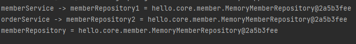 System.out.println("memberService -> memberRepository1 = " + memberRepository1);