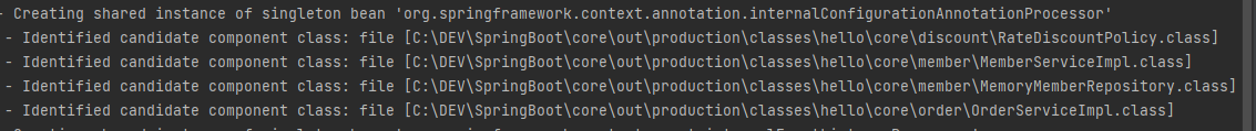 로그를 잘 보면 컴포넌트 스캔이 잘 동작하는 것을 확인할 수 있다.