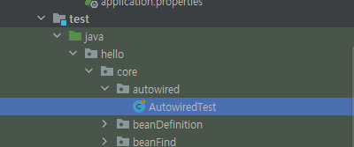 위 경로에 클래스를 만들어준다 : AutowiredTest