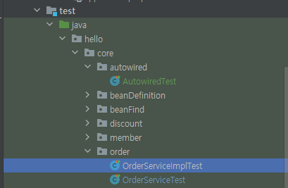 위의 경로에 OrderServiceImplTest 클래스를 생성한다.