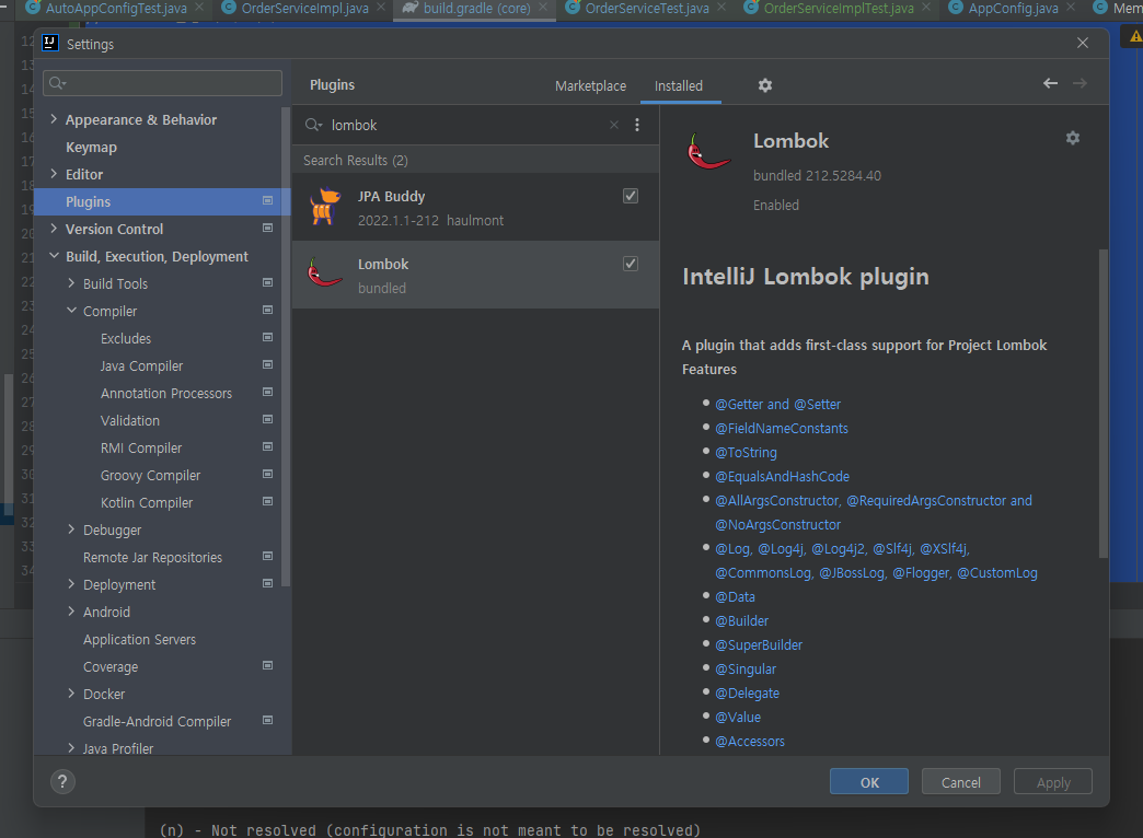 lombok을 사용하기 위해서 몇가지 설정을 추가해줘야한다.