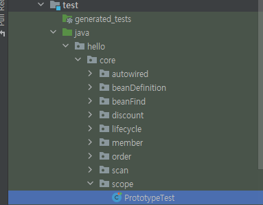 PrototyprBean 을 테스트하기 위해 아래와 같은 경로로 클래스를 만든다.