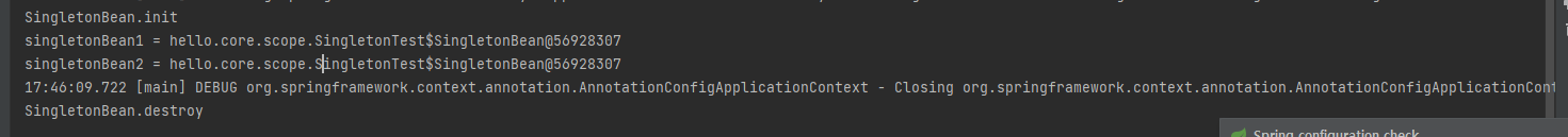 System.out.println("singletonBean1 = " + singletonBean1);