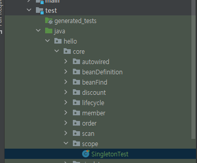 "싱글톤 스코프 빈 테스트"