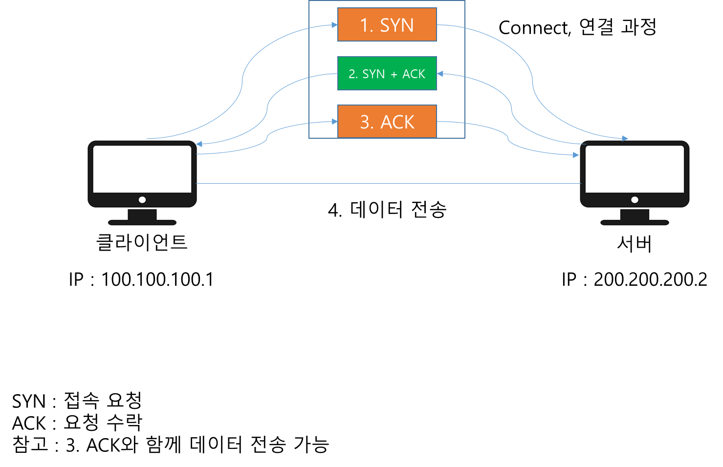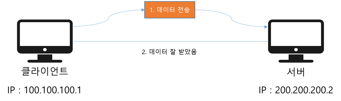 - 연결지향 - TCP 3 way handshake X