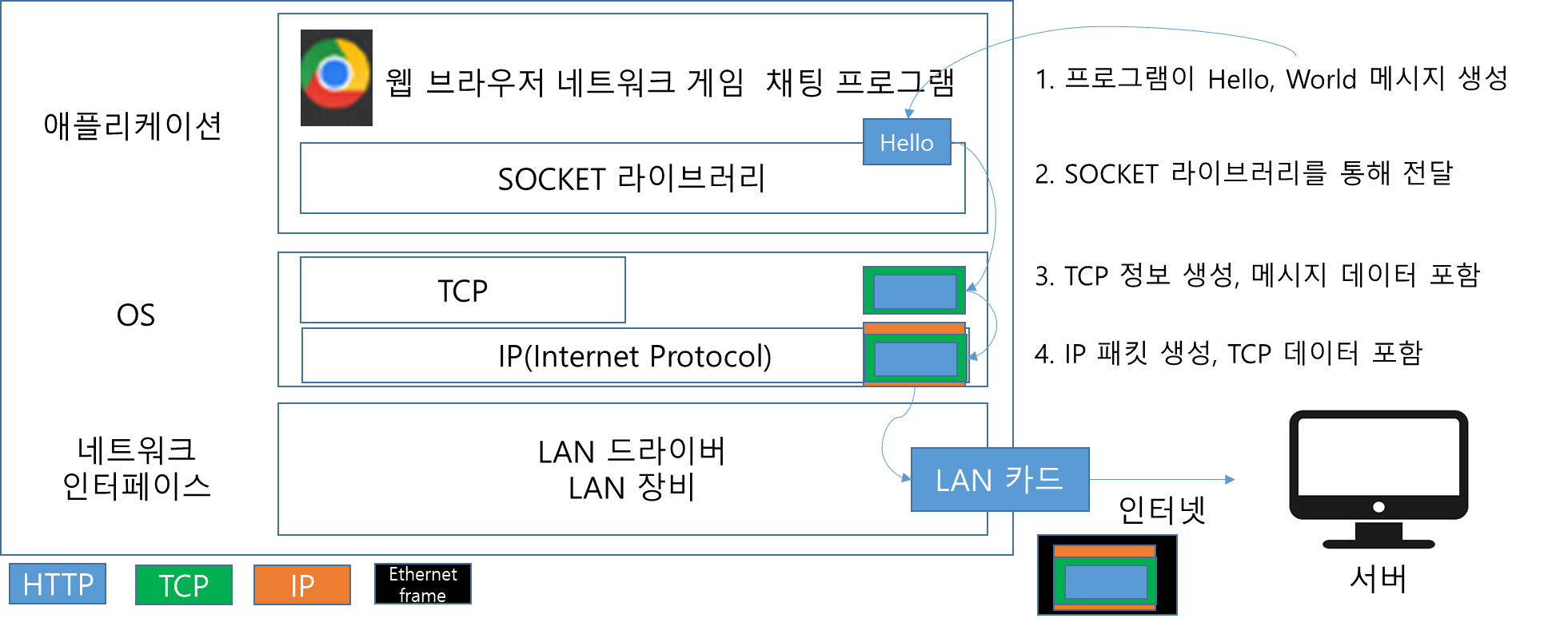 이것은 그냥 되는 것이 아니라 TCP 패킷에 전송 제어, 순서, 검증 정보가 들어있어서 가능하다.