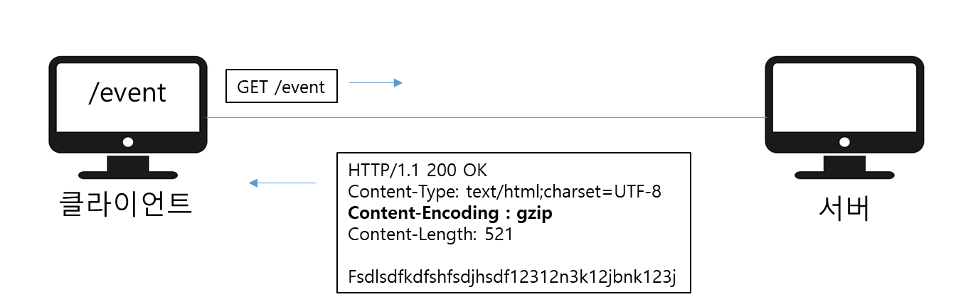 - 데이터를 전달하는 곳에서 압축 후 인코딩 헤더 추가