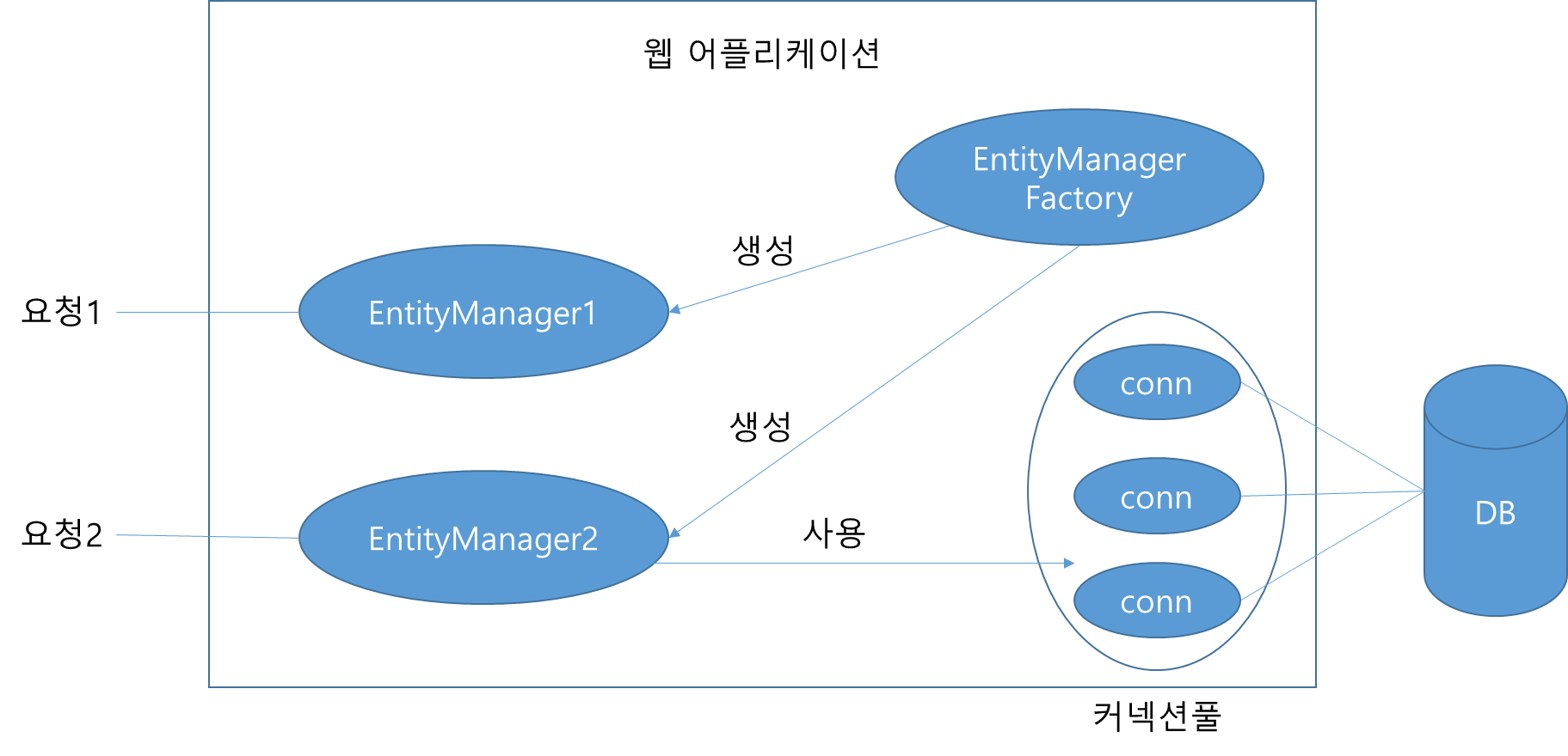 엔티티 매니저를 관리하는 엔티티 매니저 팩토리를 이해할 필요가 있다.