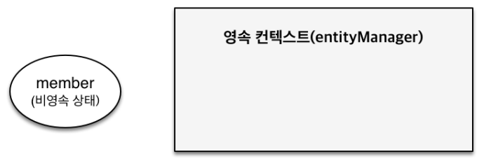 객체를 생성하고, 엔티티 매니저와 아무 상관이 없는 상태이다.