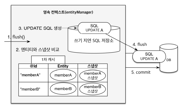 영속성 컨텍스트의 이점은 5가지가 있다.