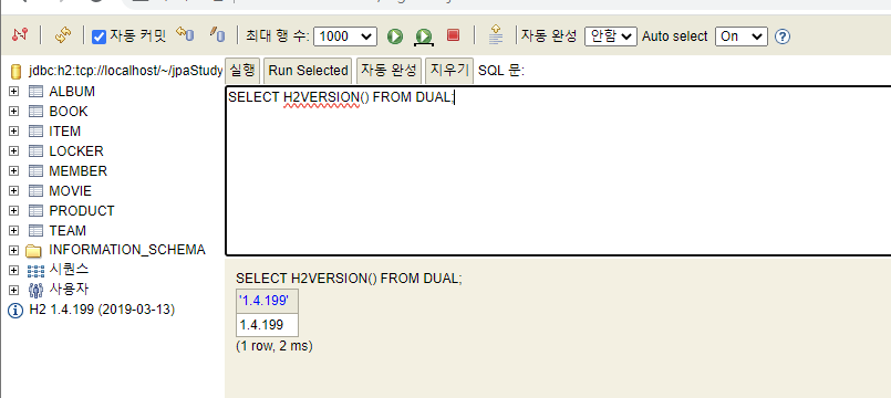 이제 설치한 버전에 맞게 제대로 설치가 되었는지 확인하는 쿼리를 사용해보자..