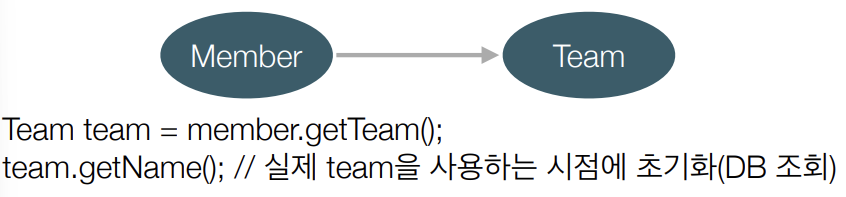 실제로 Team 객체의 필드를 조회해올 때 그 때 Team 테이블에 SELECT 쿼리가 실행된다.