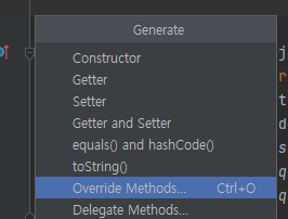 Override Methods를 선택하여 필요한 함수를 재정의한다.