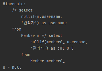 String jpql = "select nullif(m.username, '관리자') as username from Member m";