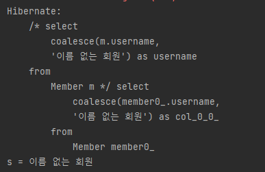 String jpql = "select coalesce(m.username, '이름 없는 회원') as username from Member m";